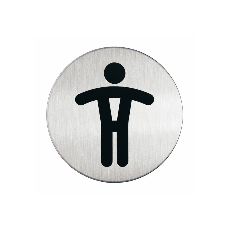 Pittogrammi di alta qualità, dal design chiaro ed essenziale. Realizzati in acciaio inossidabile antiurto e antiabrasione. Applicabili su qualunque superficie grazie alle placchette adesive poste sul retro. ° 8,3cm - colore argento metal
