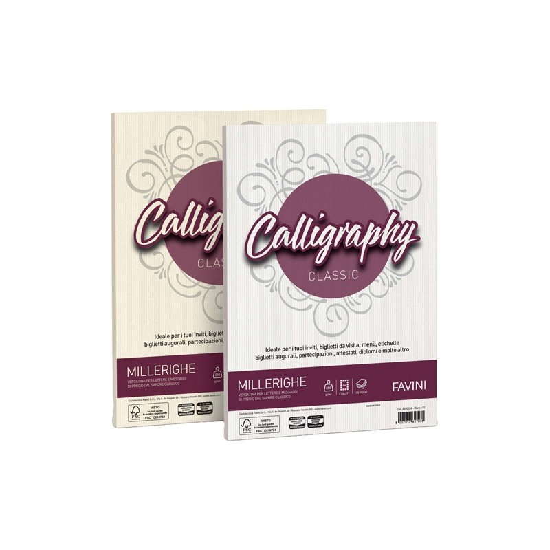 Carta Twill Favini da 100gr nelle tonalità bianco o avorio e trama millerighe. Utilizzabile per scrittura manuale, inkjet, laser e copy. Formato 21x29,7cm.