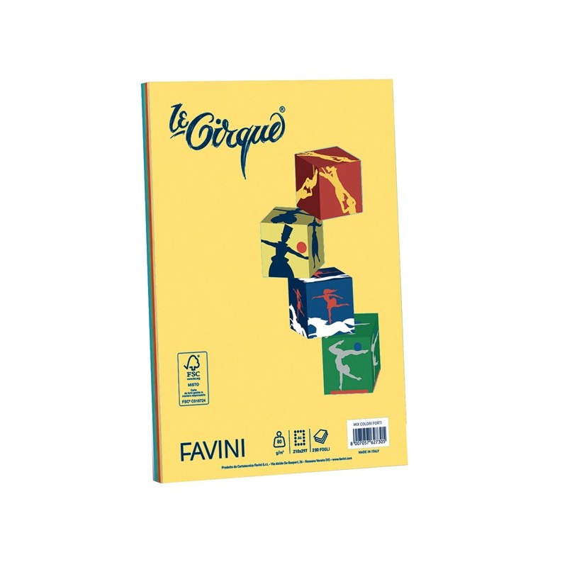 Carta Le Cirque - A4 - 80 gr - mix 4 colori intensi - Favini - conf. 200 fogli