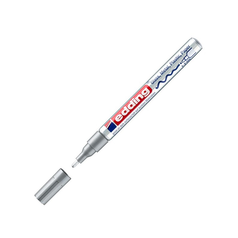 Marcatore a vernice coprente effetto smalto, permanente ed inodore. Privo di toluene/xilene. Resiste all’acqua, allo sfregamento, alle temperature fino a 400°C (bianco e argento fi no a 1000°). Aderisce a tutte le superfici lisce e porose: vetro, plastica, legno e metallo. Fusto in alluminio. Punta sintetica protetta da guaina metallica.