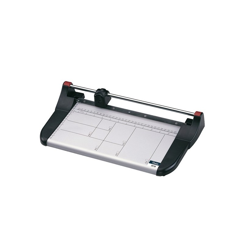 Taglierina con base in metallo, millimetrata in serigrafia. Gruppo lama intercambiabile disponibile come ricambio.
