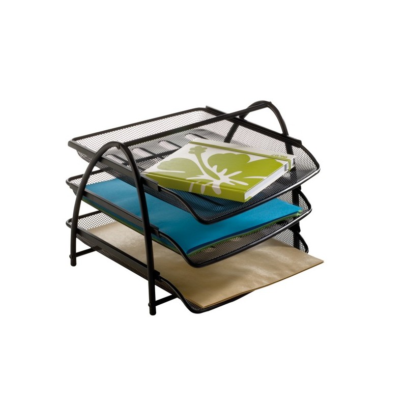 IN ROBUSTA RETE METALLICA a tre ripiani. DIMENSIONI: 34X29X34,5CM. Puo' contenere documenti formato 32x24cm.