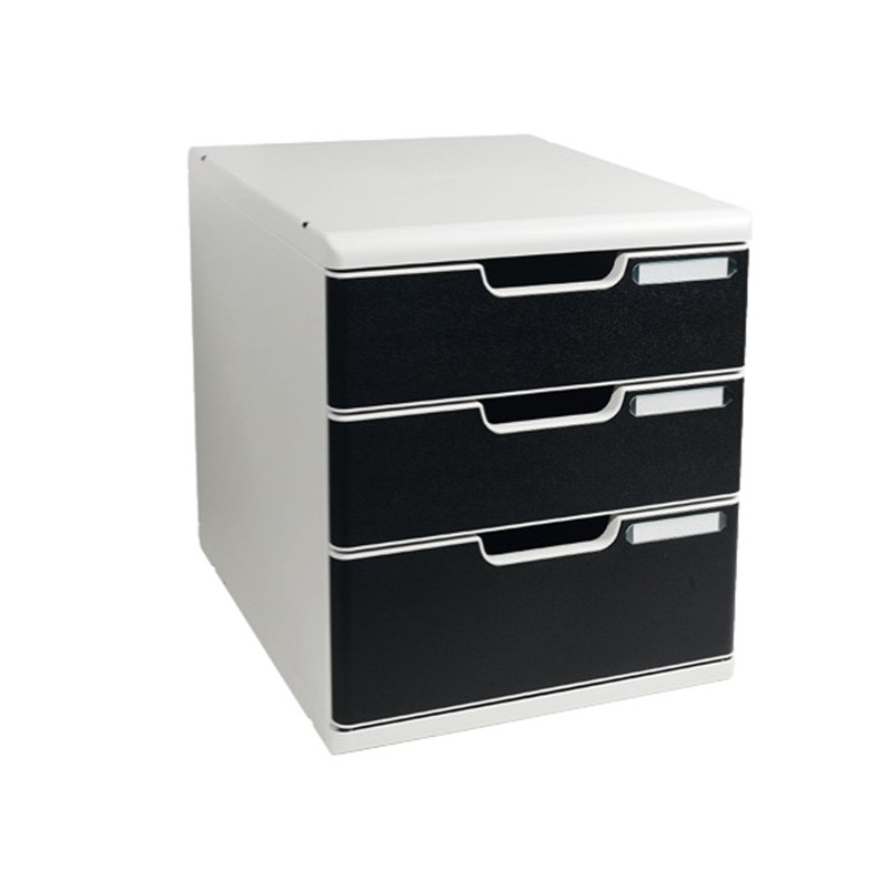 Modulo a 3 cassetti (2 da 8,2cm + 1 da 11cm) formato L 28,8x H 32x P 35cm. sistema di archiviazione elegante e funzionale per l'archiviazione dei documenti formato a4+. I vari moduli a4 e a3 sono sovrapponibili ad incastro. Ogni modulo puo' variare come numero e altezza dei cassetti. Dotato di perfetto scorrimento dei cassetti con blocco d'arresto, pratica impugnatura e porta etichetta. Fornito con clip e tappini per l'assemblaggio