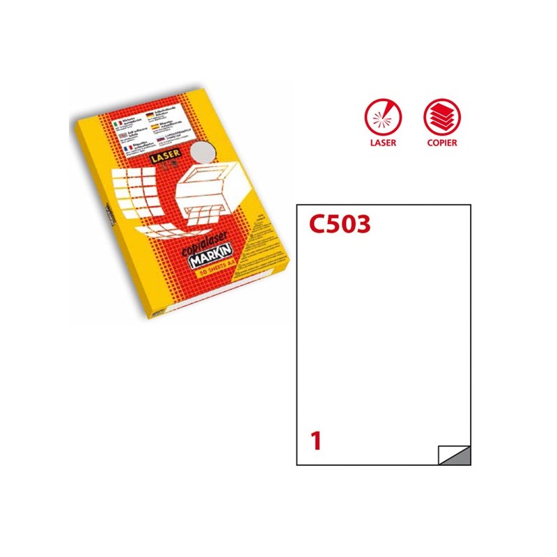 Scatola da 50fg da 21x29,7cm di etichette adesiva in poliestere trasparente lucido permanente. Adatte solo per stampanti laser.