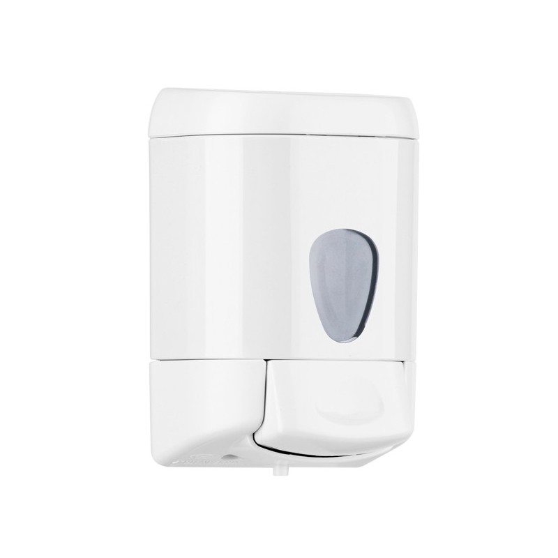 Dispenser sapone liquido con erogazione a pulsante. CapacitÓ 0,55 litro. Dimensioni 10,5x8x15,9cm.