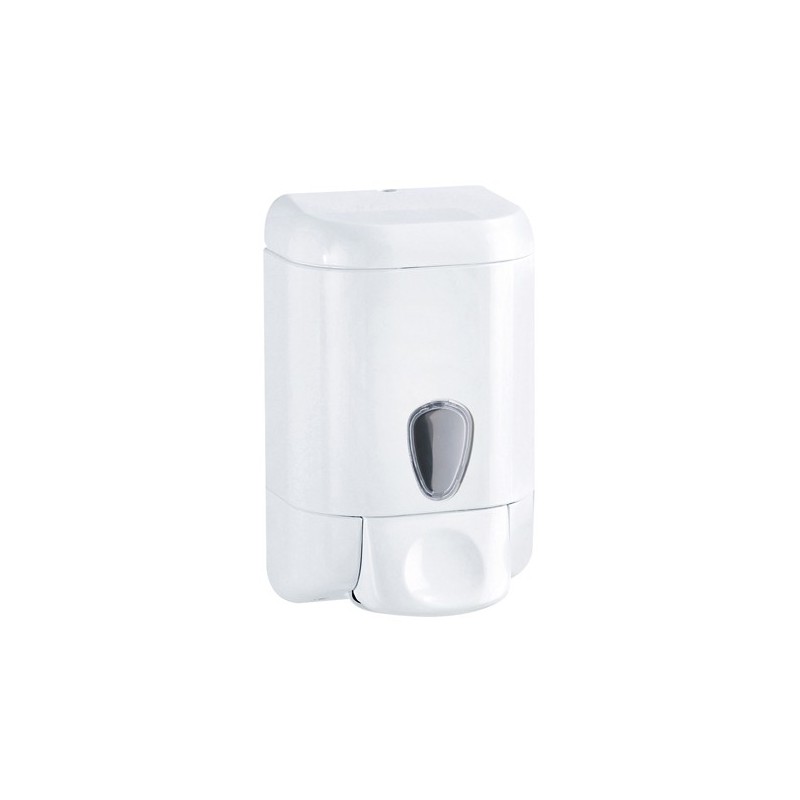 Dispenser sapone liquido con erogazione a pulsante. CapacitÓ 1 litro. Dimensioni 12,8x11,2x20,5cm.