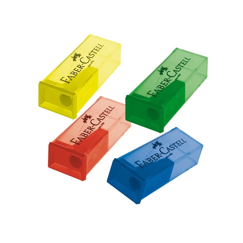 Temperamatite con serbatoio in plastica in 4 colori assortiti ad 1 foro. Dimensioni 60x25x15mm. Perfetto per l'astuccio.