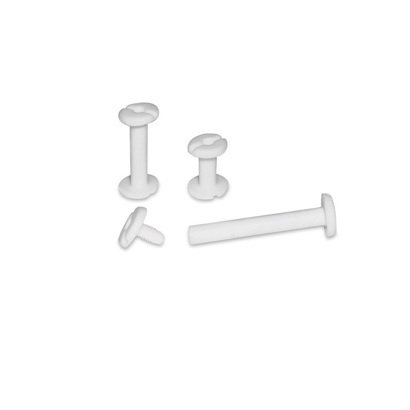 Viti in plastica bianca di diametro 5mm per rilegatura. Confezione da 20 viti.