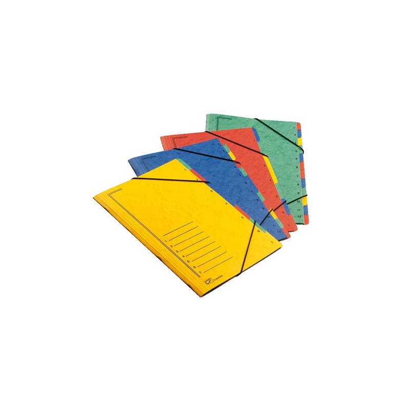 Monitore a 7 scomparti. Pratica cartella a 7 scomparti con elastico di chiusura in 4 colori vivaci. Realizzata in cartoncino da 450gr per la copertina e 320gr per gli scomparti. Formato utile 24x34cm.