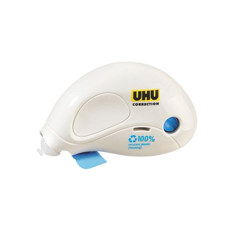 Correttore roller super pratico e compatto, con una maxi lunghezza del nastro. UHU Correction Roller Compact è il correttore a nastro per correggere in modo rapido, pulito e preciso ogni tipo di errore. Subito riscrivibile, è senza solventi e può essere utilizzato sia su carta stampata che scritta a mano. Il roller è costituito dal 100% di plastica riciclata, non contiene né acidi né PVC e la confezione è fatta con più dell'85% di cartone riciclato.