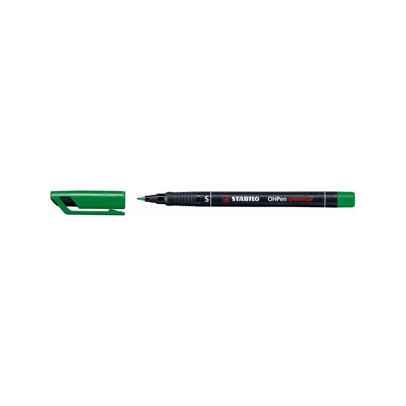 Pennarello indelebile con punta in fibra per superfici lisce, lucidi, CD-DVD. Può rimanere senza cappuccio fino a tre giorni senza seccare. Punta 0,4mm. Colore: verde.