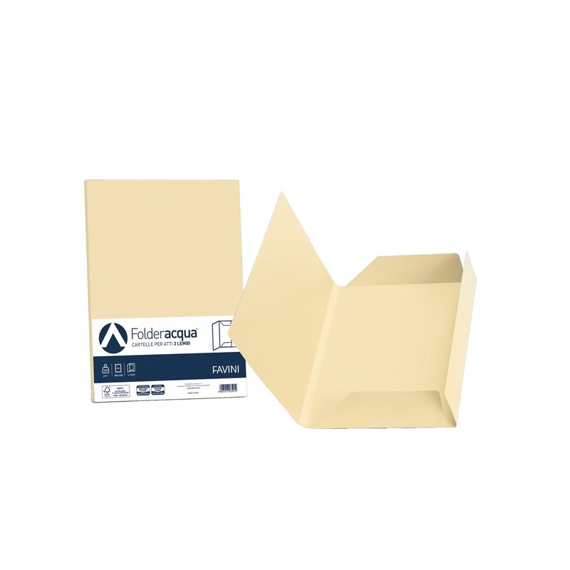 Cartellina a tre lembi in cartoncino bristol da 200gr liscio su ambo i lati. Il fondo dei tre lati presenta lembi fustellati e ripiegati. Formato 245x345mm.
