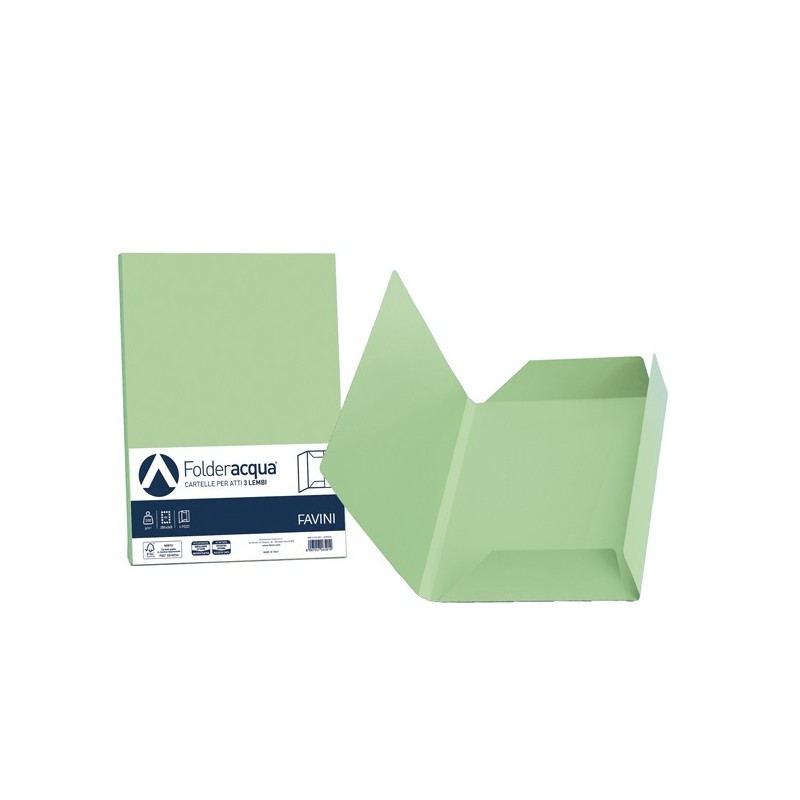 Cartellina a tre lembi in cartoncino bristol da 200gr liscio su ambo i lati. Il fondo dei tre lati presenta lembi fustellati e ripiegati. Formato 245x345mm.