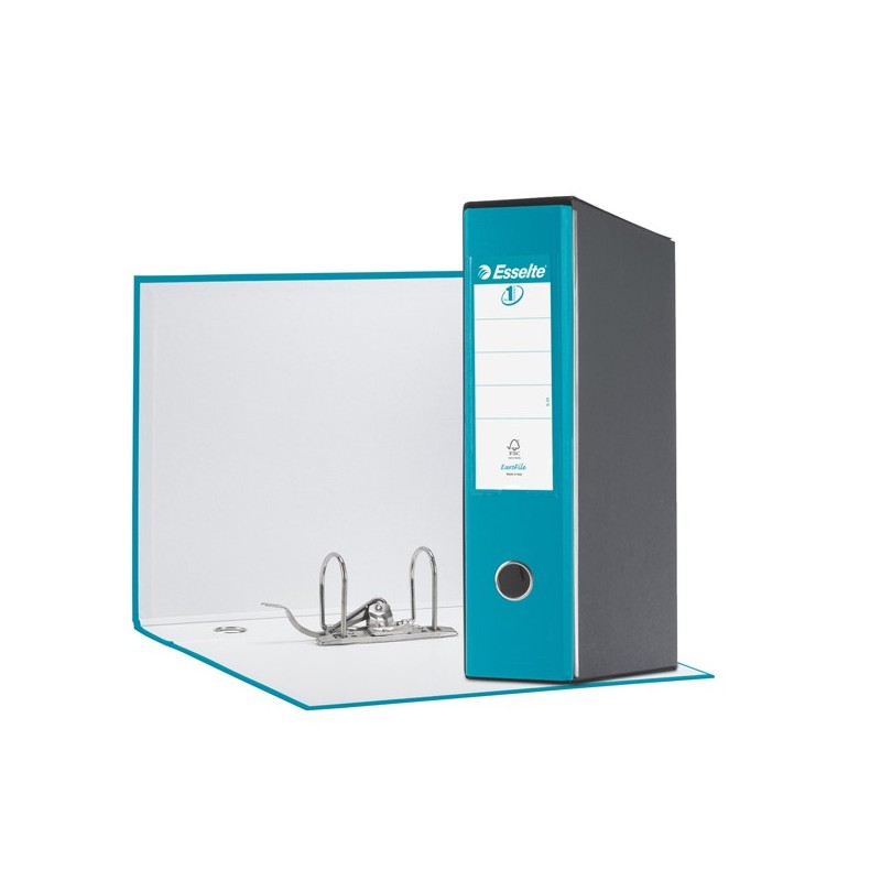 Registratore in robusto cartone da 2 mm, rivestito sia internamente che esternamente in polipropilene incollato su entrambi i lati. Dotato di ampia etichetta scrivibile su entrambi i lati e di portaetichetta saldato sul dorso.