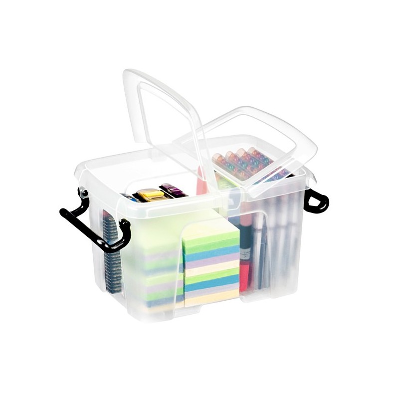 Contenitori multiuso in plastica trasparente ideali per riordinare e archiviare in modo intelligente e pratico. Dotati di maniglie a clip e di coperchio pieghevole per permettere l'accesso al contenuto anche quando fissato sul contenitore. Molto robusti e dal design moderno sono impilabili in modo stabile e forniscono una protezione perfetta contro umiditÓ e polvere. Disponibili in 6 capacitÓ.