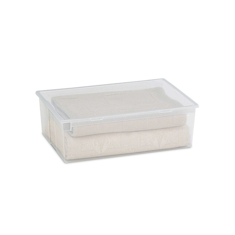 Contenitori multiuso in plastica trasparente con coperchio. Ideali riporre oggetti, documenti cartelle e ogni altra cosa debba essere riordinata. Dotati impugnature laterali per il trasporto. Impilabili stabilmente.