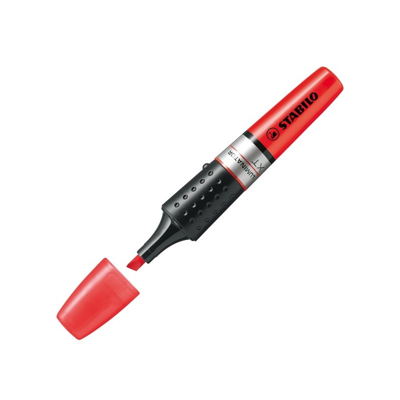 Inchiostro a base d'acqua. Serbatoio a vista XXL con indicatore d'inchiostro. Evidenzia fino a 500mt. Resiste 4 ore senza cappuccio. Due ampiezze di tratto 2-5mm. Colore: rosso.