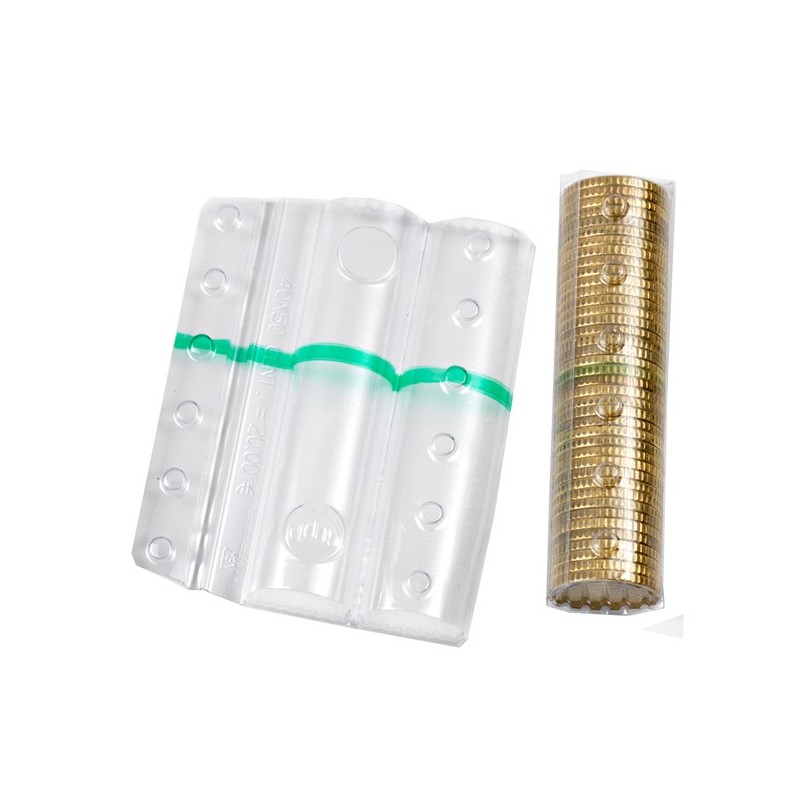 Blister in PVC trasparente con fascia colorata verde per identificare il taglio della moneta da 50 centesimi. Capacità 40 monete.