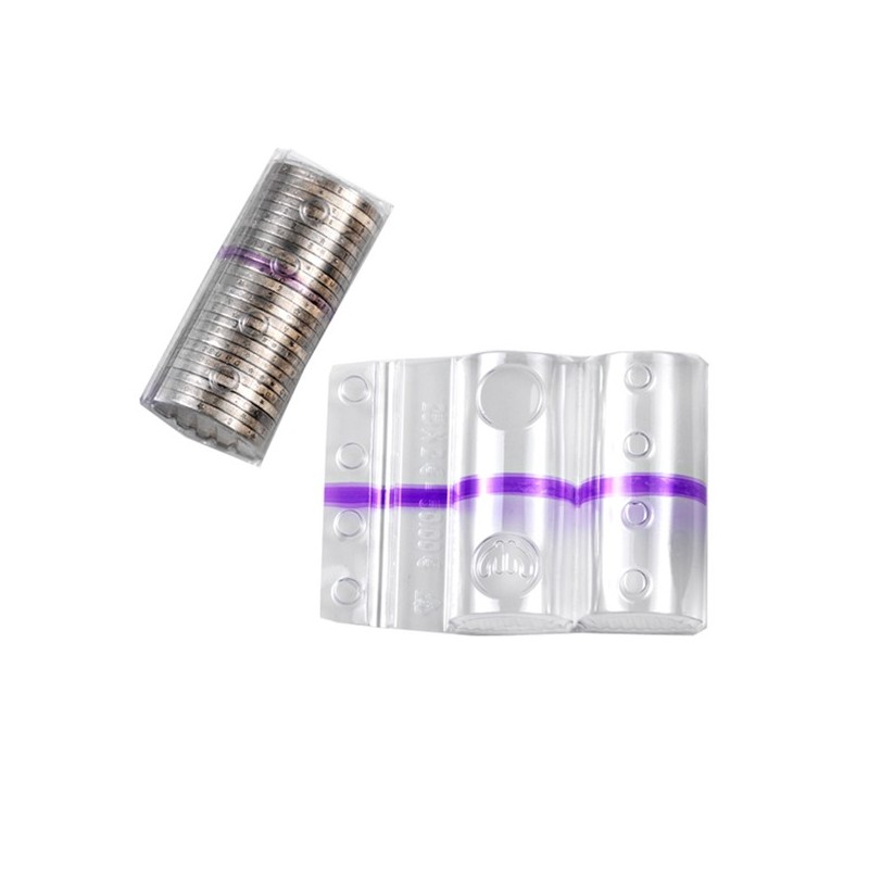 Blister in PVC trasparente con fascia colorata viola per identificare il taglio della moneta da 2 euro. CapacitÓ 25 monete.