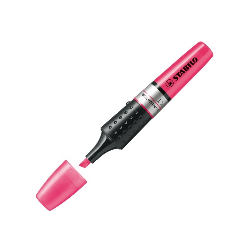 Inchiostro a base d'acqua. Serbatoio a vista XXL con indicatore d'inchiostro. Evidenzia fino a 500mt. Resiste 4 ore senza cappuccio. Due ampiezze di tratto 2-5mm. Colore: rosa.