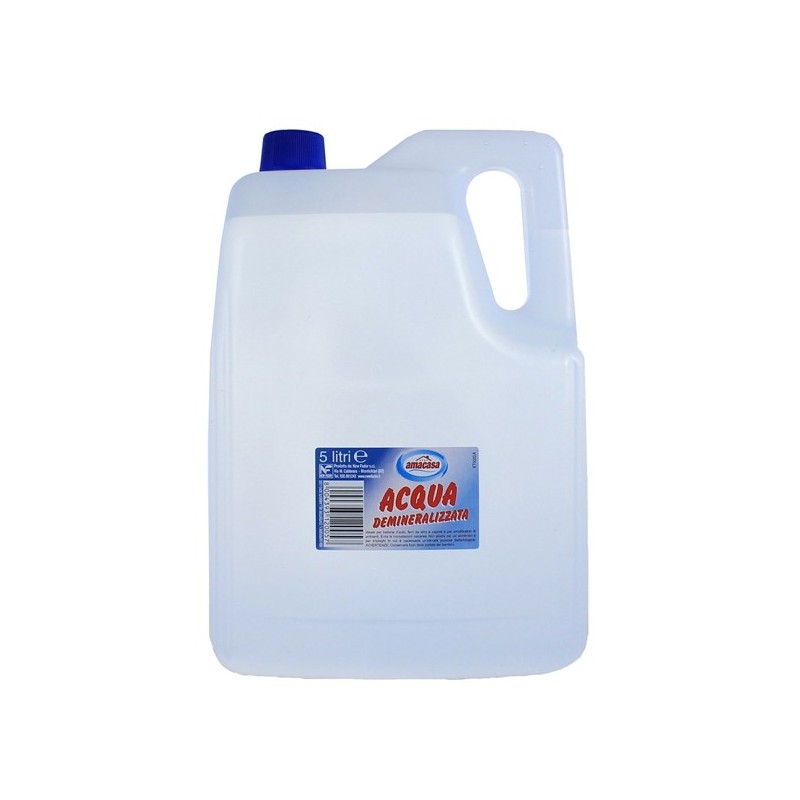 Acqua demineralizzata in tanica in PEHD colore neutro con tappo Salva Bimbo in PP colore blu. E' ottenuta attraverso il procedimento di osmosi inversa, è priva di sali minerali, di magnesio e calcio. Ideale per batterie d’auto, ferri da stiro a vapore e per umidificatori di ambienti. Evita le incrostazioni calcaree. Non adatta per usi alimentari e per impieghi in cui è necessaria un’elevata purezza batteriologica.