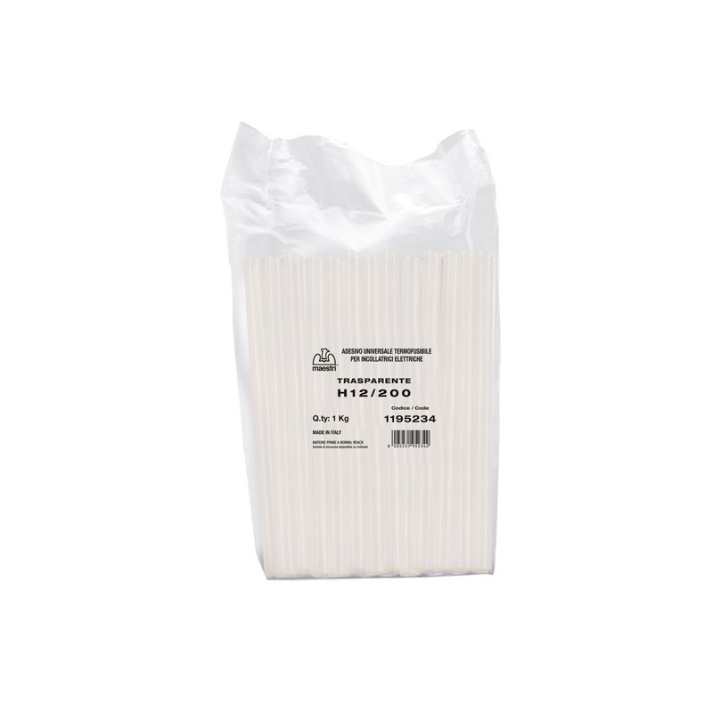 Colla termofusibile trasparente ° 12mm - l 200mm prodotto europeo conforme al regolamento reach (ce) n.1907/2006