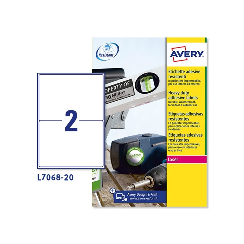 Etichette adesive extra strong L7068 - in poliestere - laser - permanenti - 199,6 x 143,5 mm - 2 et/fg - 20 fogli - bianco - Av