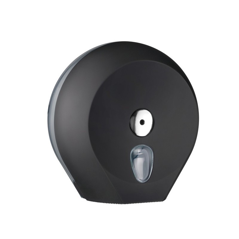 Distributore per carta igienica in rotolo Jumbo di diametro massimo 23cm. Superficie colorata Soft Touch. Dotato di serratura con chiave in materiale plastico riciclato. • Dimensioni: L27 x P12,8 x H27,3cm • Diametro massimo rotolo contenuto: 23cm