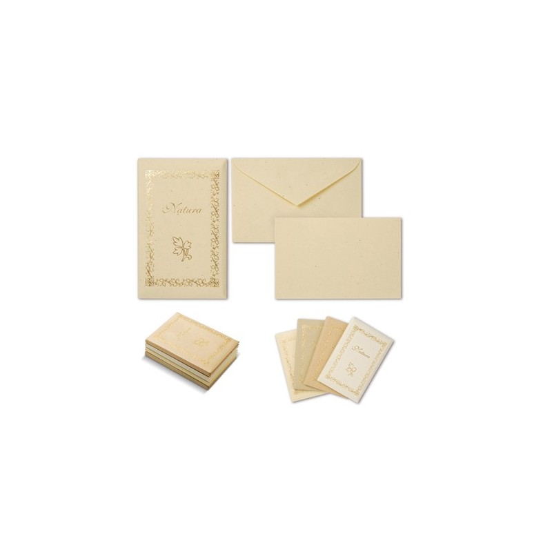 Confezione NATURA composte da 10 buste (100gr) + 10 biglietti (240gr) nel formato 90x140mm.