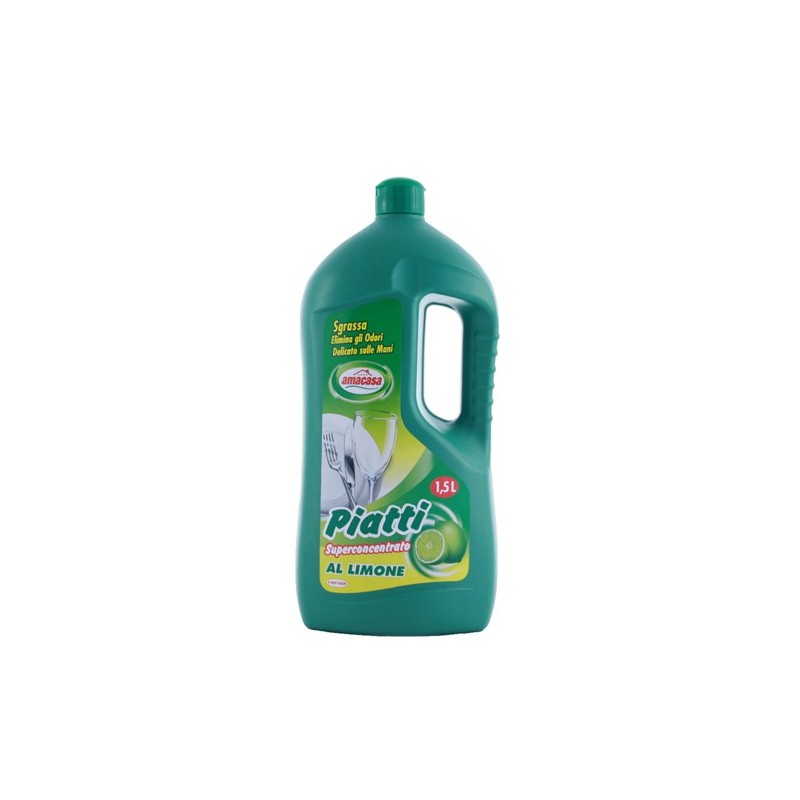 Detergente per il lavaggio a mano delle stoviglie. Sgrassa a fondo, elimina gli odori e delicato sulle mani. Profumazione limone. Flacone da 1.5litri.