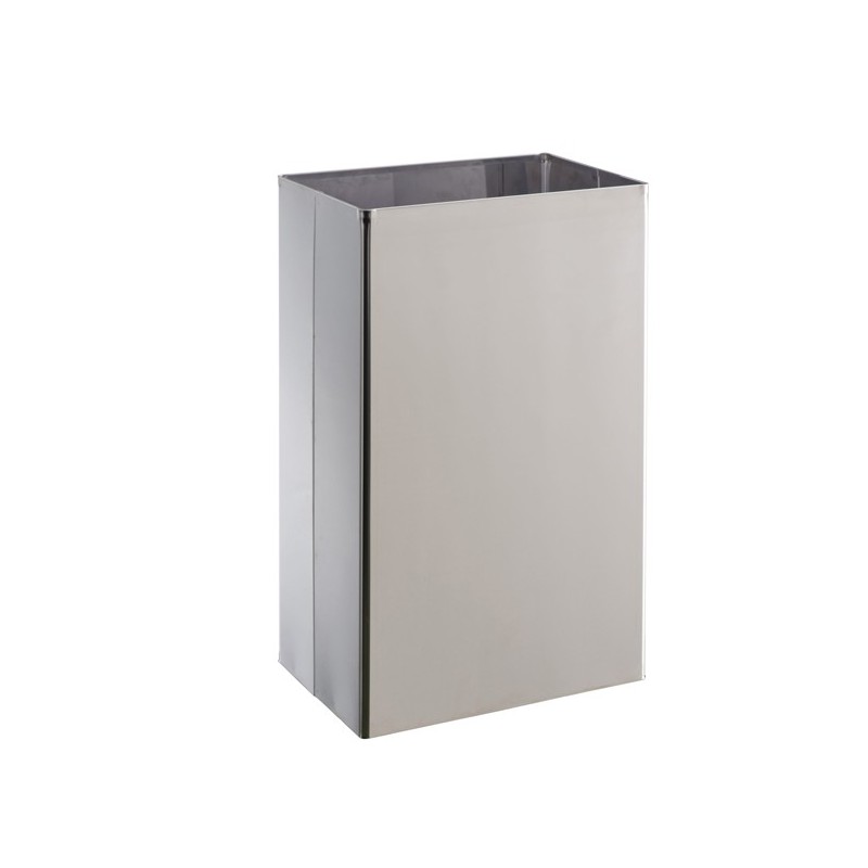 In acciaio inox, adatto sia per fissaggio a muro che da appoggio. Dimensioni: L30xP20x H50cm - 25lt. Effettuare una periodica manutenzione per prevenire l’ossidazione del materiale utilizzando una spugna non abrasiva e sciacquando con abbondante acqua, preferibilmente calda. Per prevenire la formazioni di macchie ed aloni è consigliabile asciugare la superficie con uno straccio di cotone. Ogni 10 o 20 pulizie ordinarie, è consigliabile utilizzare prodotti specifici per inox, in spray o crema, non aggressivi.
