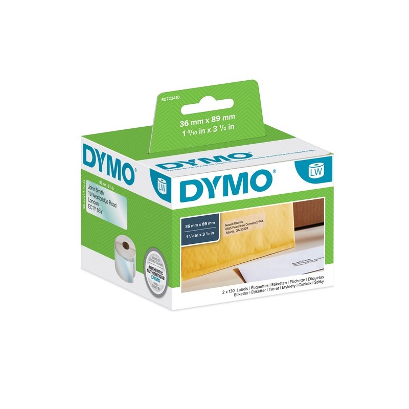 Rotolo etichette adesive permanenti in plastica trasparente per indirizzi estesi 89x36mm. 260 etichette/rotolo. Utilizzabili con le stampanti per etichette labelwriter.