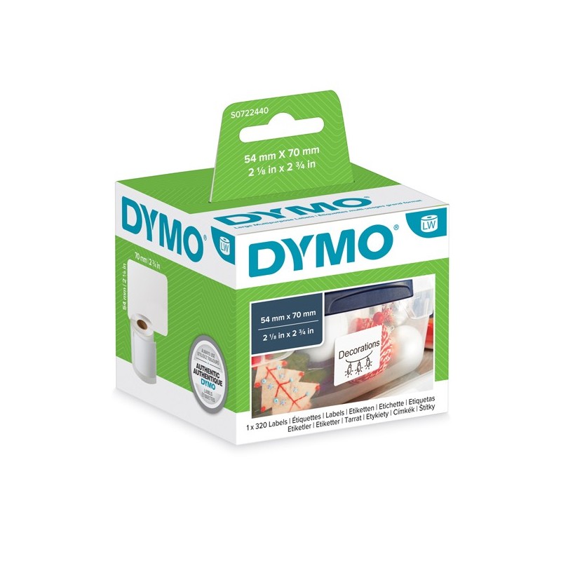Rotolo etichette adesive permanenti in carta bianca per dischetti 54x70mm. 320 etichette/rotolo. Utilizzabili con le stampanti per etichette labelwriter.
