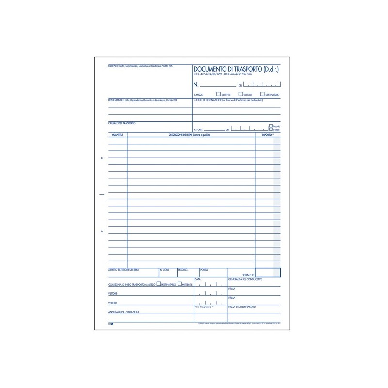 BLOCCO DDT. Formato 225x297mm. Fogli 50x3. Ric.