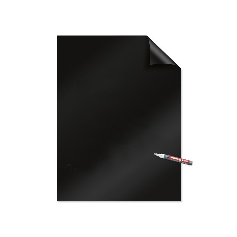 Rotolo da 25 fogli neri effetto lavagna, in speciale pellicola elettrostatica in grado di aderire su qualsiasi parete senza l'ausilio di adesivi. Superficie scrivibile con pennarelli neon per lavagne o marcatori a vernice. Rotolo con microperforazione da cui staccare fogli formato 60x80cm. Adatti anche per oscurare le finestre in modo temporaneo.