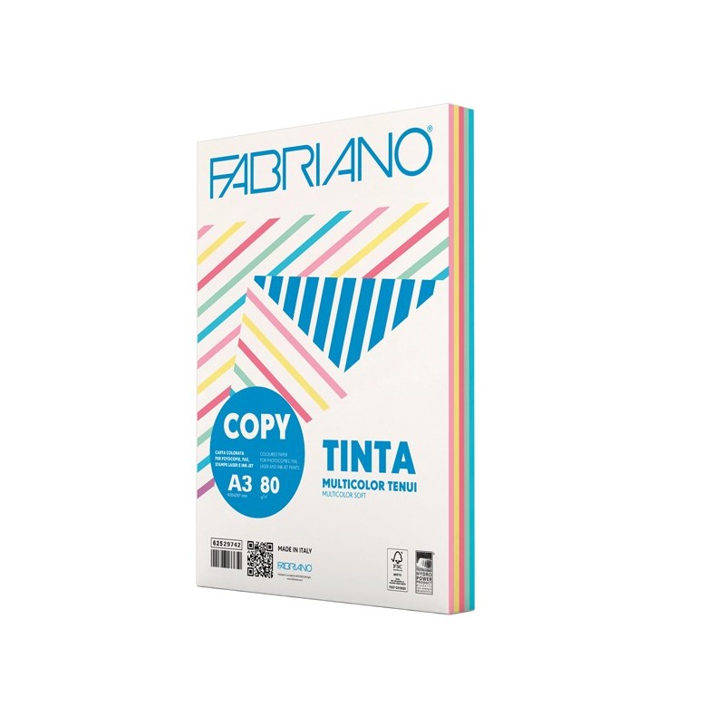 Carta Fabriano Colore - A3 - 80 gr - mix 5 colori tenui - Fabriano - conf. 250 fogli