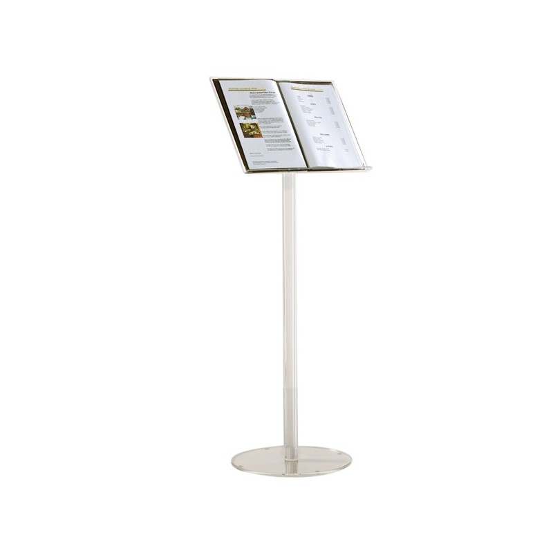 Elegante struttura in acrilico con base circolare e leggio 32x48cm. Ideale per centri congressi, conferenze, ristoranti, teatri ecc. dimensioni: °36 x 122cm