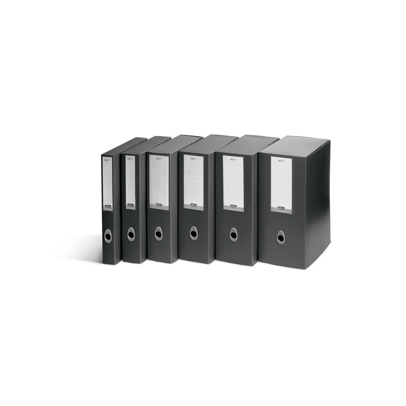 Scatola Progetto Plus Vip in polipropilene con chiusura esterna ed interna a bottone. Portaetichetta sul dorso con etichetta rimovibile. Occhiello di estrazione ergonomico. Formato utile 34,5x24,5cm.