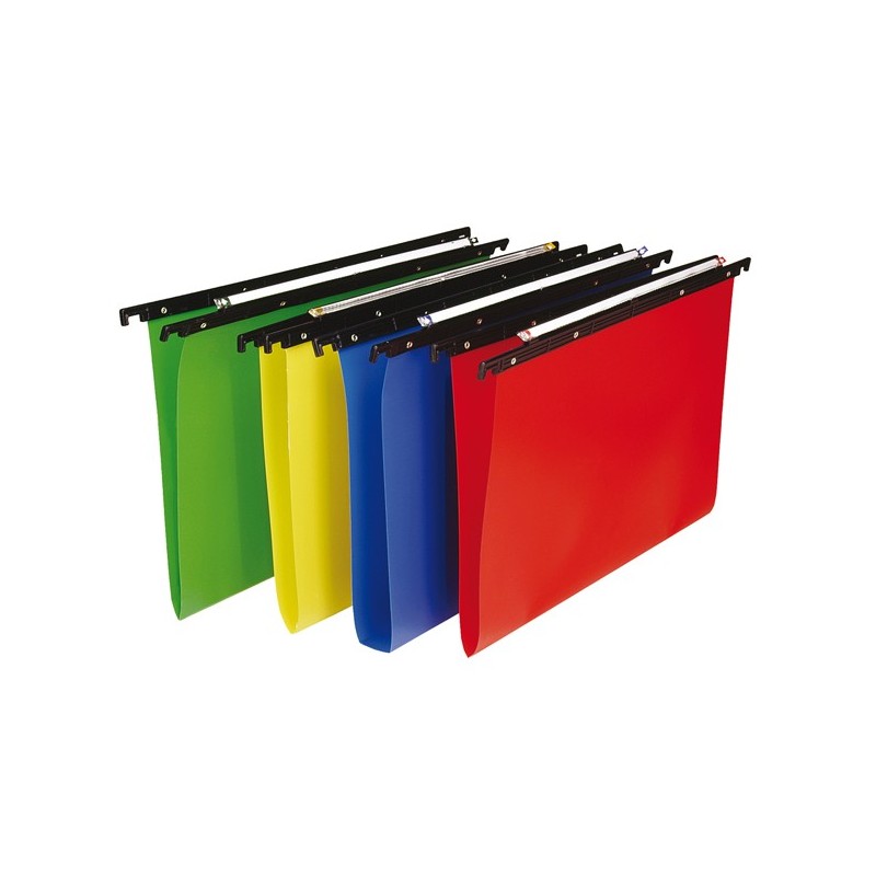 Cartelle sospese Top di gamma in polipropilene e con una particolare attenzione alla sostenibilità (polipropilene proveniente da riciclo post-industriale in una percentuale non inferiore al 50%). Fabbricate con i migliori materiali e le migliori tecniche produttive, sono garantite 20 anni. Realizzate in polipropilene riciclato con spessore 300 micron Aste di sospensione in polistirene nero antiurto, molto resistenti (spessore 6 mm.) e rispettose dell'ambiente (90% riciclato post-consumo). Sistema di assemblaggio tramite rivetti metallici che garantisce i massimi requisiti in termini di resistenza e durata. Portaetichette già montato in plastica trasparente con effetto lenticolare (100% riciclato post-industriale) lungo 31 cm. Etichette con bordo colorato per l’immediata individuazione dei fascicoli. Interasse 33 cm. fondo a V. Formato esterno 31,2x25cm. Conf. 25 pezzi Colori Assortiti Garanzia Prodotto: 20 anni. MADE IN ITALY