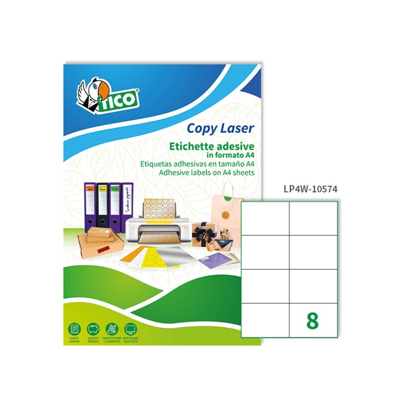Etichette adesive LP4W - in carta - permanenti - 105 x 74 mm - 8 et/fg - 100 fogli - bianco - Tico
