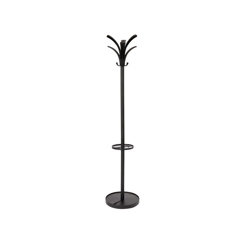 Appendiabiti in acciaio e abs con base appesantita. Dotato di 6 supporti abito, 3 ganci e portaombrelli con raccogli acqua. Testa girevole. Colore nero. Dimensione ° 38 x 175cm
