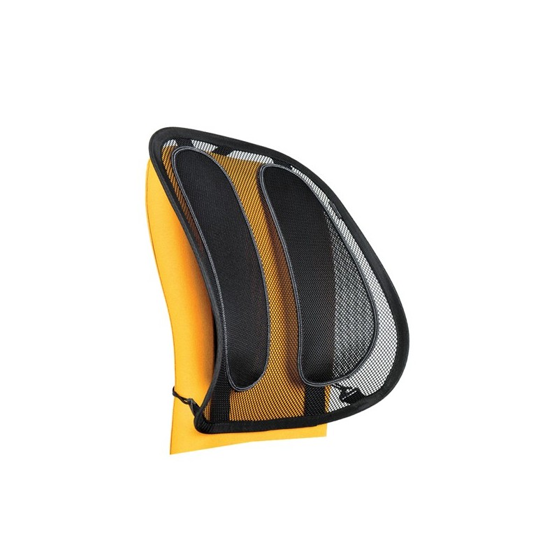 In tessuto a rete con inserti di rinforzo, si adatta alla forma del corpo. Sistema di ancoraggio tri-tensioning per elimnare la necessità di continui aggiustamenti, facilmente adattabile alla sedia. Dimensione 50x45x20cm.