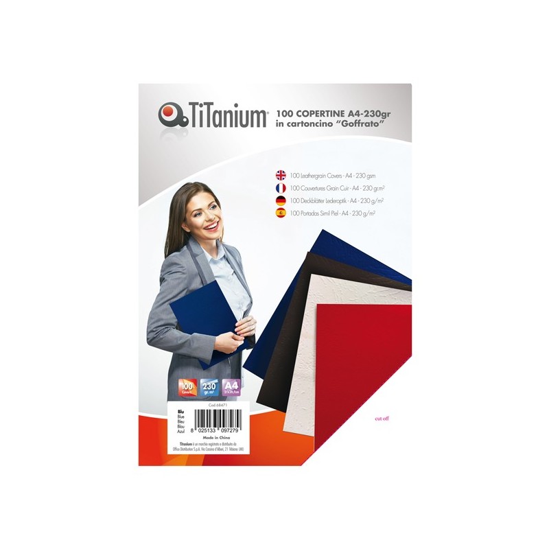 Copertine ideali per conferire un aspetto "finito" alle rilegature. In cartonicino con goffratura tipo "leather grain" da 230gr Formato: A4 Colore: blu