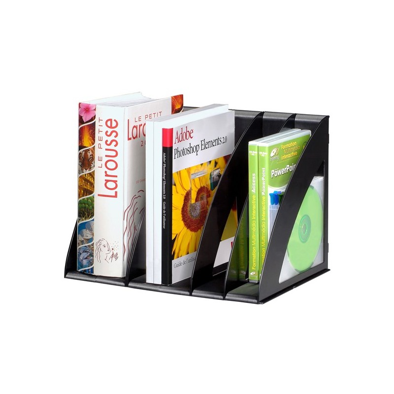 Portariviste modulare con struttura in robusto polistirene formata da 6 divisori regolabili. I moduli si assemblano consentendo spazi fra i divisori da 5 o da 10cm. Dimensione: 30x22x22cm.