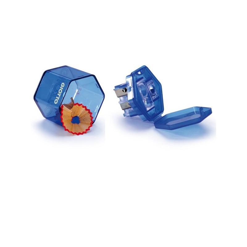 Temperamatite esagonale a 3 fori in 5 colori assortiti ( rosa, arancio, blu, verde, giallo).
