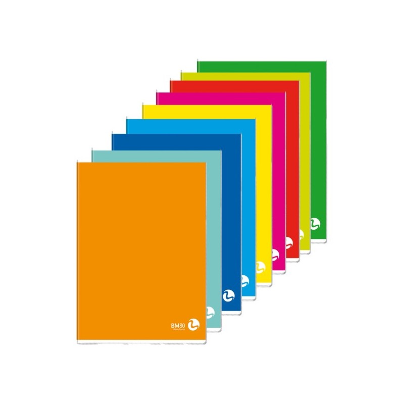 Maxiquaderno con copertina in cartoncino da 250gr con verniciatura U.V. Carta da 80gr 40+2 fogli. Rilegatura con punto metallico.