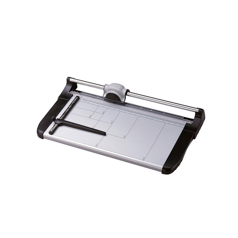 Taglierina con base in metallo, millimetrata in serigrafia. Gruppo lama intercambiabile disponibile come ricambio.