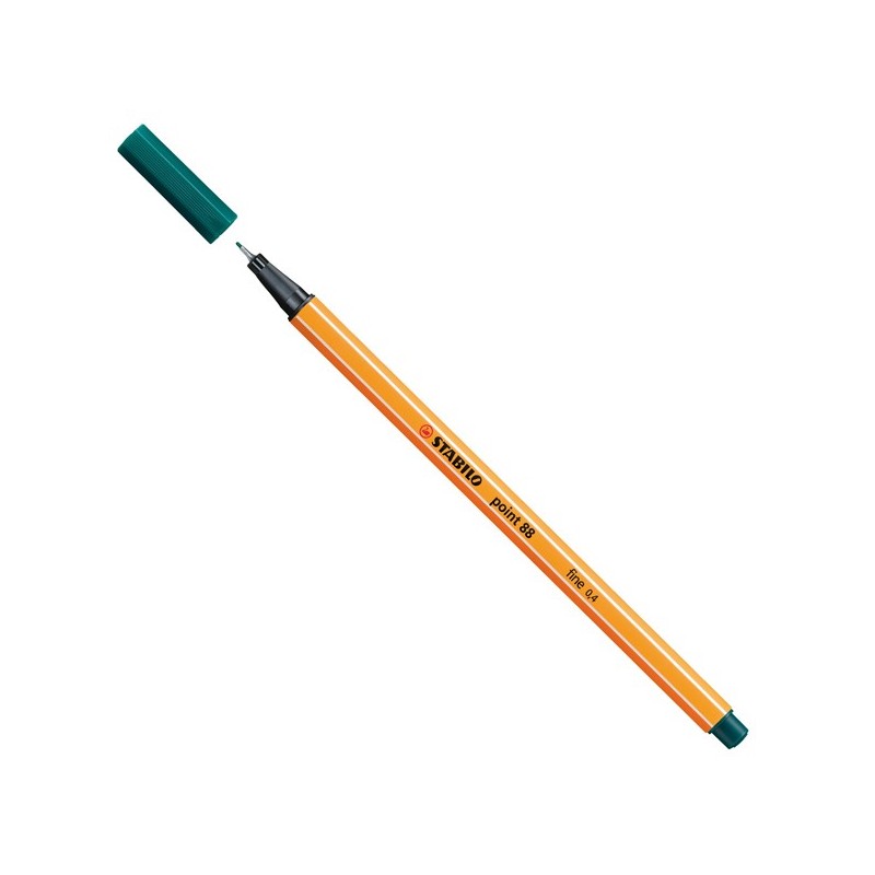 Punta in feltro con rinforzo in metallo per garantire una grande resistenza. Cappuccio ventilato antisoffocamento. Lunga durata anche senza cappuccio. Ideale per lavori con riga , fotocopie e stancils. Tratto da 0,4mm. Colore: verde pino.