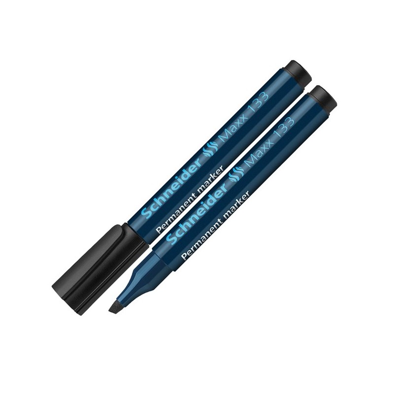 Marcatore permanente per scrittura su cartone, carta, plastica, vetro, metallo, ecc. Inchiostro inodore senza toluene e xilolo. Ad asciugatura rapida, colore intenso. Cappuccio dotato di pratica clip. Punta conica. Tratto 1-4mm. Colore: nero.
