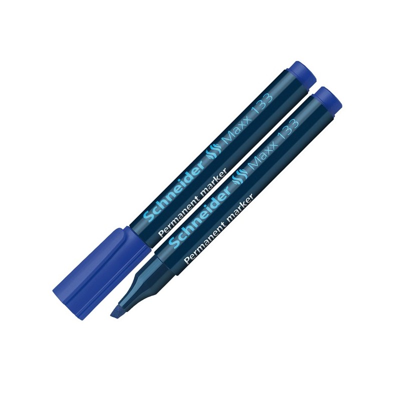 Marcatore permanente per scrittura su cartone, carta, plastica, vetro, metallo, ecc. Inchiostro inodore senza toluene e xilolo. Ad asciugatura rapida, colore intenso. Cappuccio dotato di pratica clip. Punta conica. Tratto 1-4mm. Colore: blu.